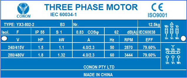 YX3 1.1kw 1.5HP 2800rpm shaft 19mm Electric motor Three-phase 415V/240V