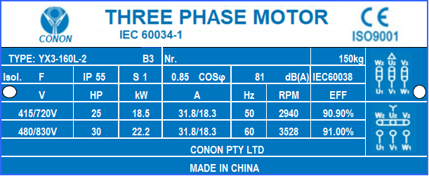 2 poles 18.5kw 25HP 2800rpm shaft 42mm Electric motor 3 phase 415v compressor pump