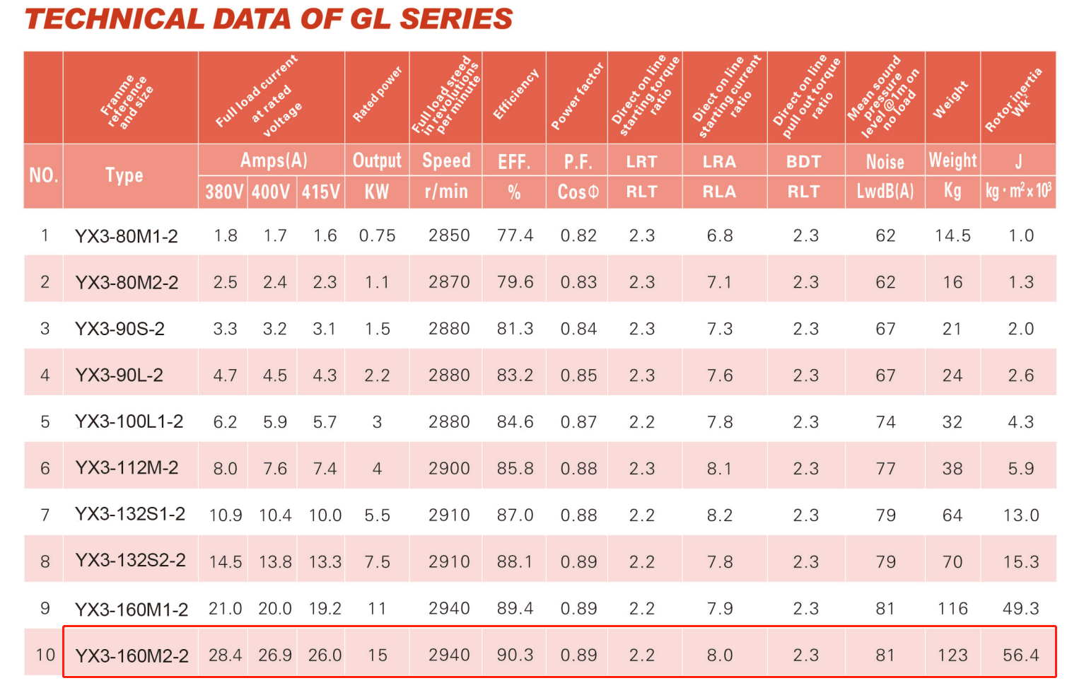 2 poles 15kw 20HP 2800rpm Three Phase 415/720V shaft 42mm Induction Electric motor