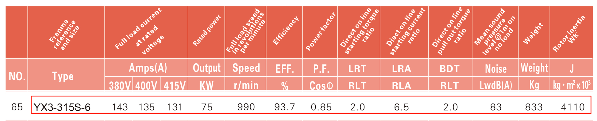 6 poles 75kw 100HP 980rpm Three Phase 415/720V shaft 80mm Induction Electric motor