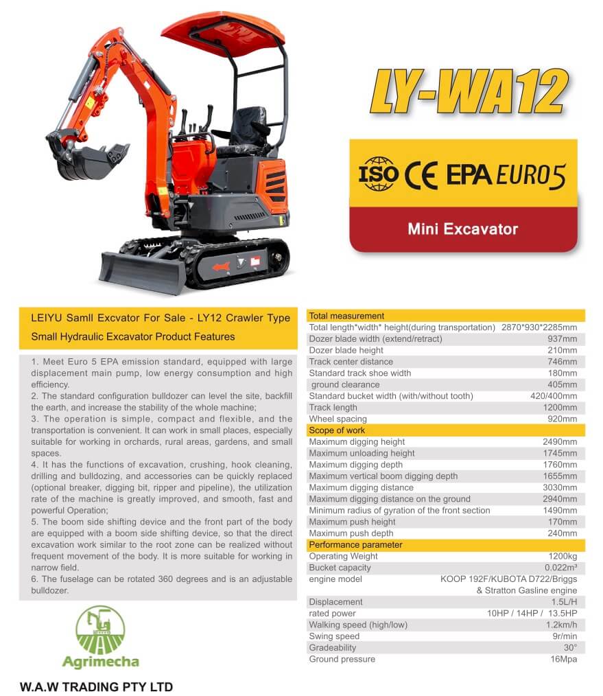 Brand NEW MINI Excavator DIESEL Engine 1.2T in Red and Yellow Color
