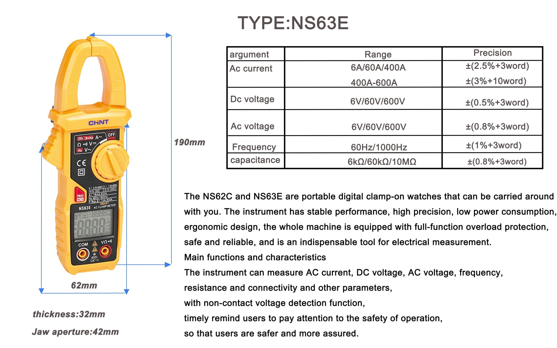 Chint NS63E high precision measuring meter Handheld tongs electrical meter