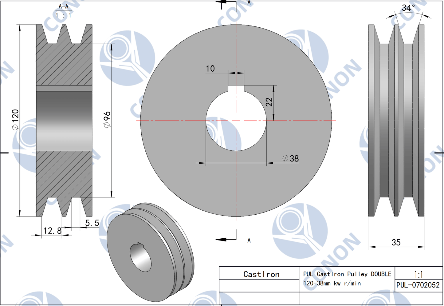 Double groove Pulley 120mm shaft size 38mm for electric motor Cast Iron Made