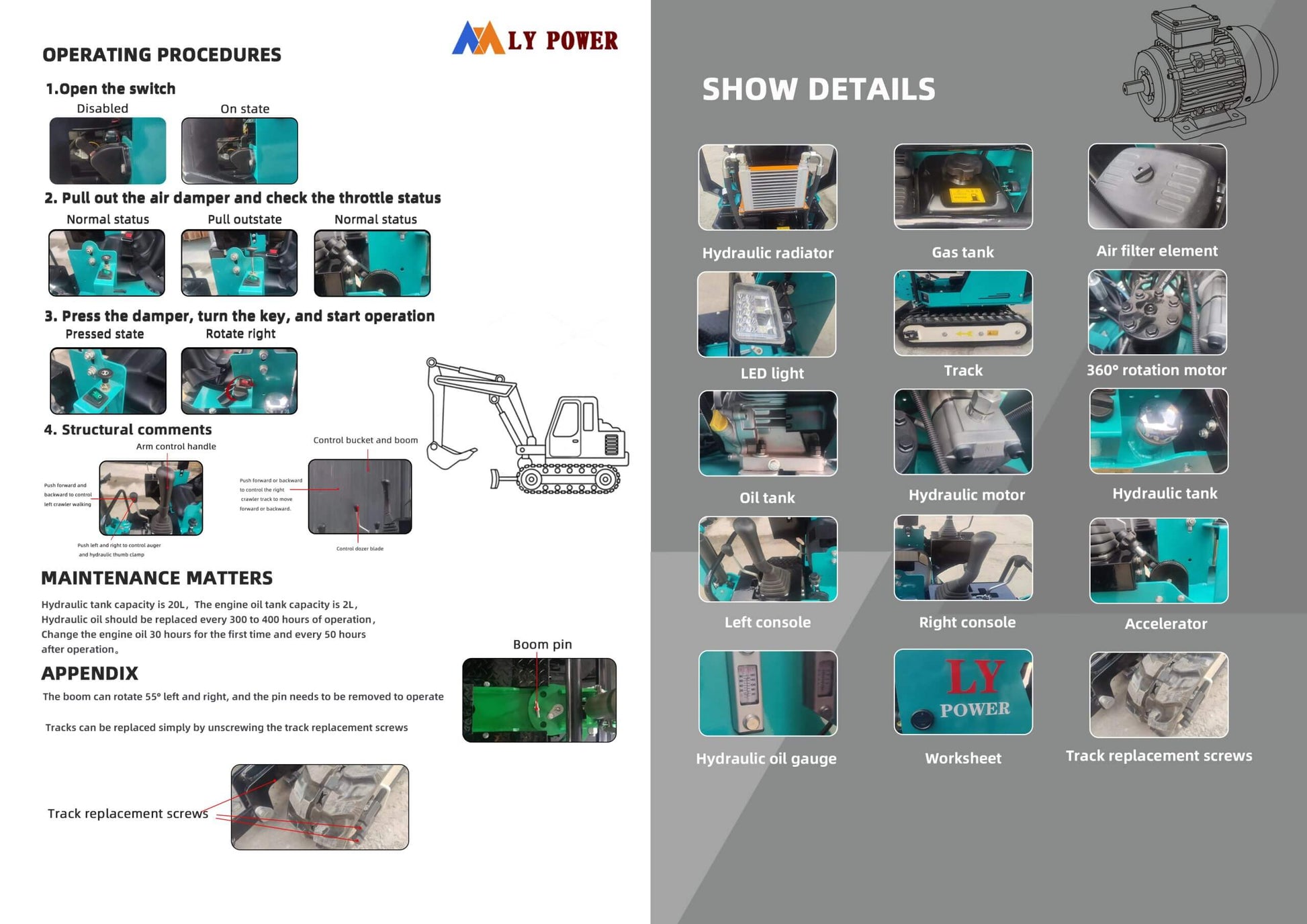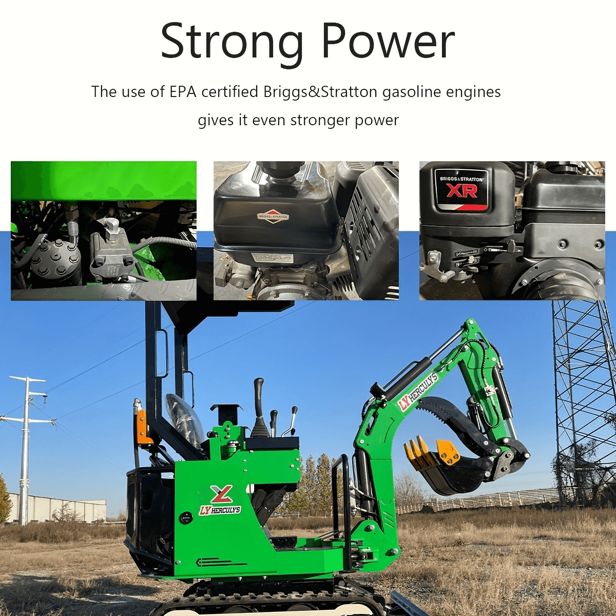 New MINI Excavator 1.0T Breton Gasoline Engine 12HP Green & Blue