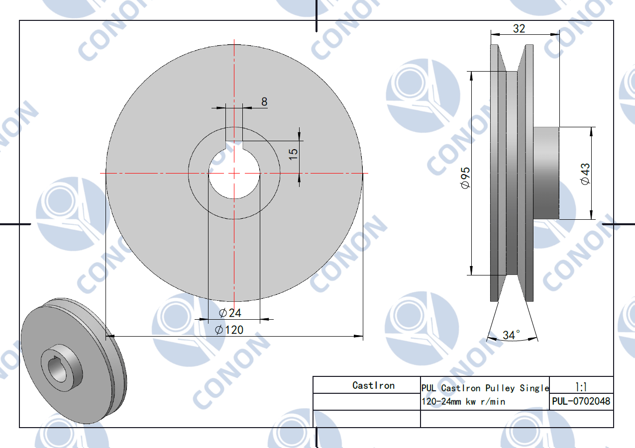 Pulley 120mm shaft size 24mm Single Groove Belt Drive pulley