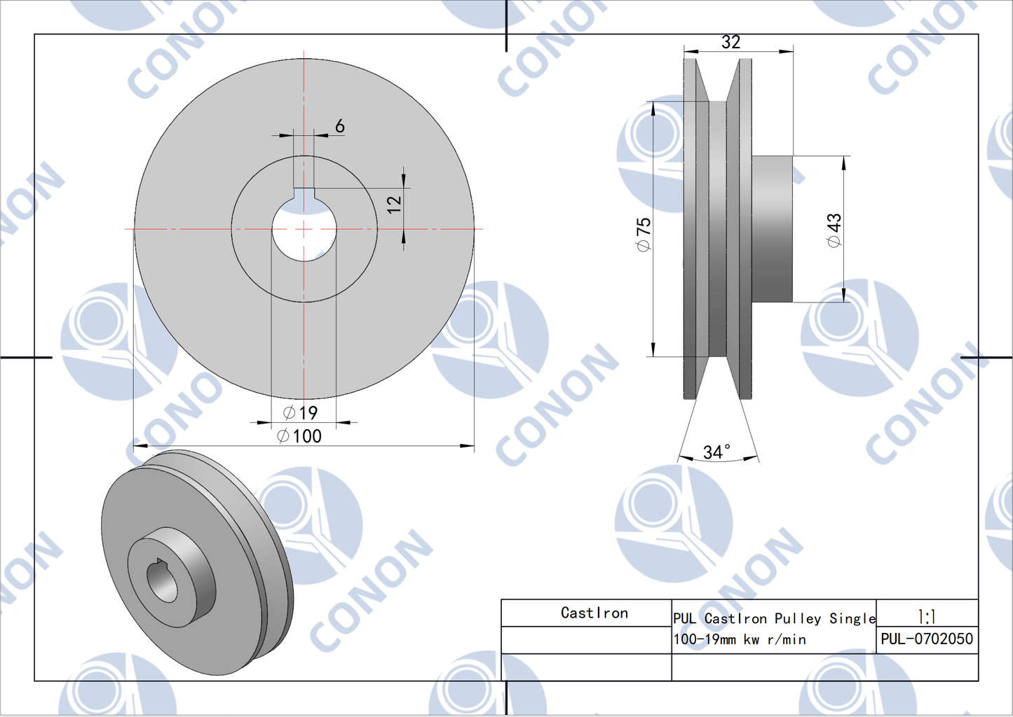 Single groove Pulley 100mm shaft size 19mm for electric motor Cast Iron Made