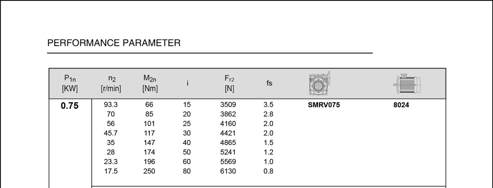 Three Phase 0.75kW 1HP 1400rpm Electric Motor & Worm Gearbox Type 075