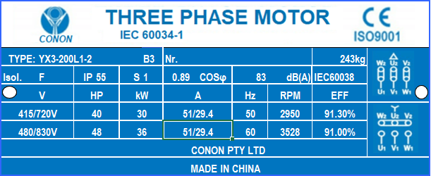 2 poles 30kw 40HP 2800rpm shaft 55mm Induction Electric motor 3 phase 415v compressor